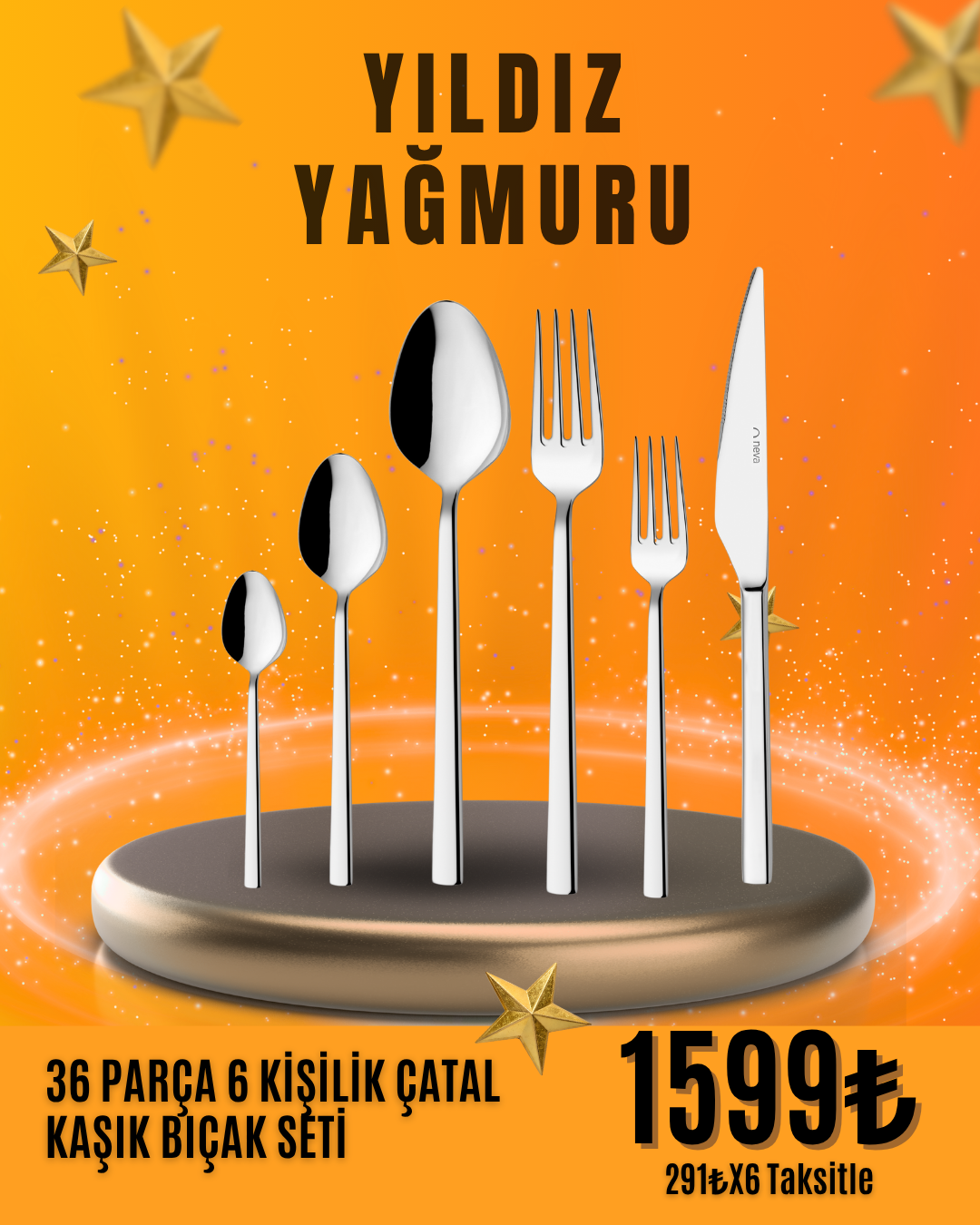 36 PARÇA 6 KİŞİLİK ÇATAL KAŞIK BIÇAK SETİEKİM'İN YILDIZLARI