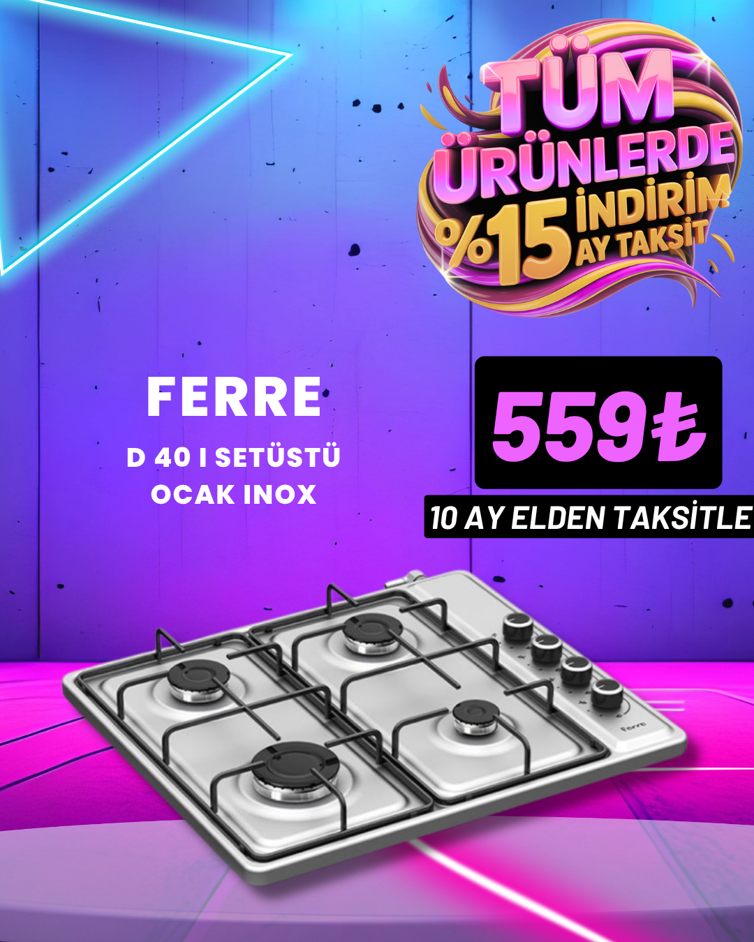 Ferre D 40I Setüstü Ocak - InoxSet Üstü Ocak