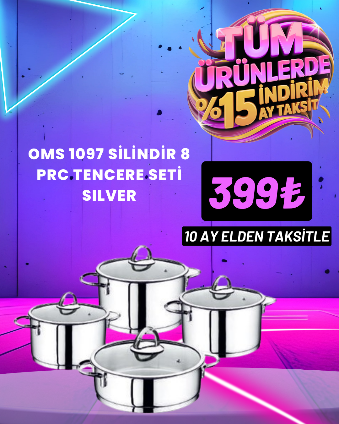 OMS 1097 SİLİNDİR 8 PRC TENCERE SETİ SILVERTencere Setleri