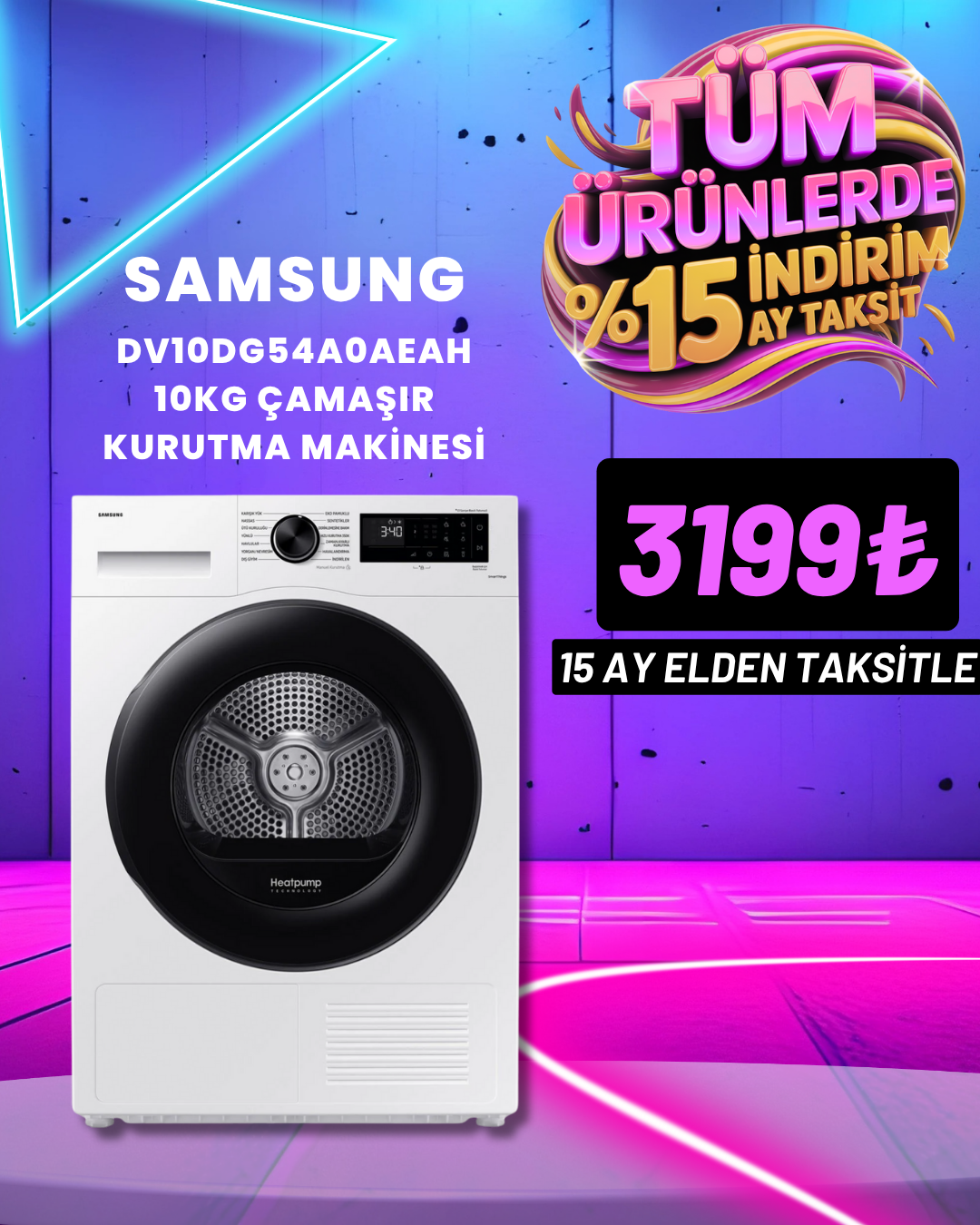 Samsung DV10DG54A0AEAH 10 Kg Çamaşır Kurutma Makinesi Beyaz